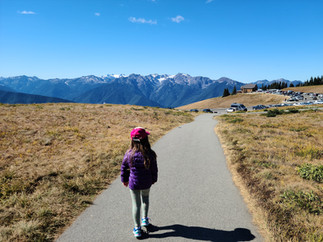 On day three we drove into Olympic National Park and up to "Hurricane Ridge." While only 18 miles south of our Airbnb in Port Angeles, it took us about an hour to get there as it sits about 5,240 ft. above sea level. Hurricane Ridge provides incredible views of the Olympic Mountains and is a fantastic jumping off point for several incredible hikes. Unfortunately for us (Tim and Christine), Cora and Leo were not as enthused by the prospect of hiking (or moving in general) as we were. As a result, we were only able to manage a short trail (if one could even call it that), in which most of our energy was spent carrying cranky children. Despite this, in the end we were able to have a really nice family picnic (including several visits from a very friendly chipmunk) on the ridge while enjoying the incredible weather and views!
